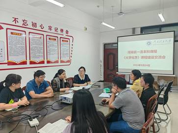我院承担全校理工科近20个专业的大学化学教学任务,在全体老师共同努力下,《大学化学》现已建设为河南省一流本科课程,大学化学教学团队建设成为校级教学团队。在接下来的教学过程中,团队成员将继续探索,在实践中总结经验,继续努力推进大学化学课程建设。