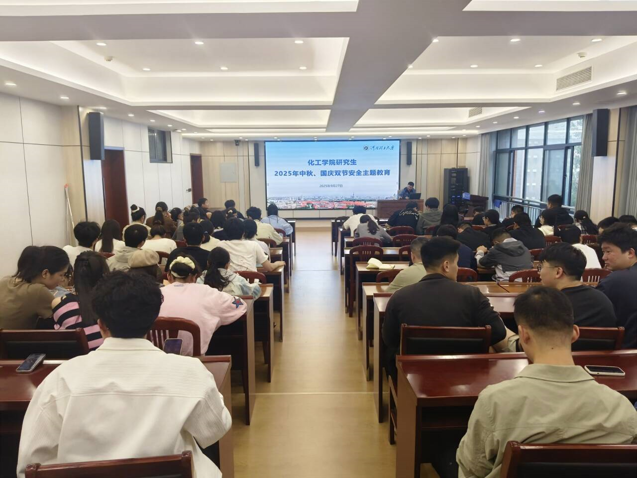 国庆、中秋双节将至,为切实增强研究生的安全意识,确保全体研究生度过一个平安、祥和、愉快的假期,化工学院于9月27日在综合实验楼507会议室,专门面向全体研究生组织了一场2025年国庆、中秋双节安全主题教育活动。本次活动由辅导员闫奋飞主持,旨在全面部署假期安全管理工作,筑牢校园安全防线。