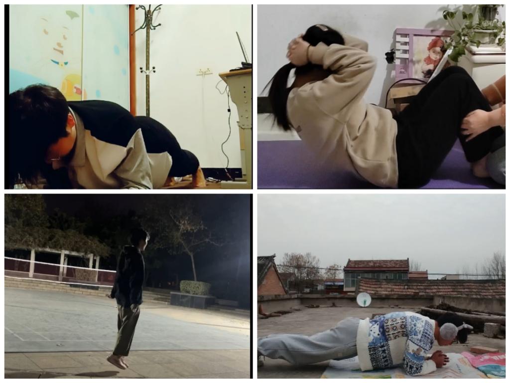 本次活动以个人形式参与,在遵守疫情防控政策的前提下,积极开展健身运动视频录制活动。运动内容包括深蹲、俯卧撑、平板支撑、跳绳、仰卧起坐等,同学们可以选择喜欢的运动形式,用手机来拍摄视频,展现丰富的居家、居校生活,做到学习、锻炼两不误,从而缓解考研的压力。除此之外,在自己锻炼的同时也可以将这份快乐分享给身边的人,让朋友、家人和室友也参与其中,感受体育运动所带来的快乐,营造出生动活泼、轻松愉悦的锻炼氛围。打卡期间,同学们相互督促和鼓励,既能完成自己既定的目标,释放压力,又能使同学之间相互监督、共同进步,展现出当代大学生的青春与活力。
