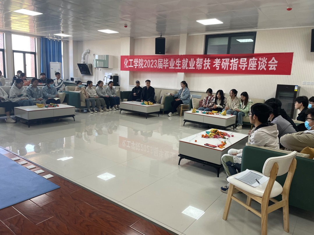 3月13日上午,学院在综合实验楼531活动中心开展“化工学院2023届毕业生就业帮扶考研指导座谈会”,旨在鼓励毕业生勇敢追梦,无畏前行,在各自的岗位上建功立业,铸造青春荣光。学院党委副书记郭学鹏、特聘组织员王丙新及各专业50余名毕业生代表参加座谈,活动由毕业班辅导员李红斌老师主持。
