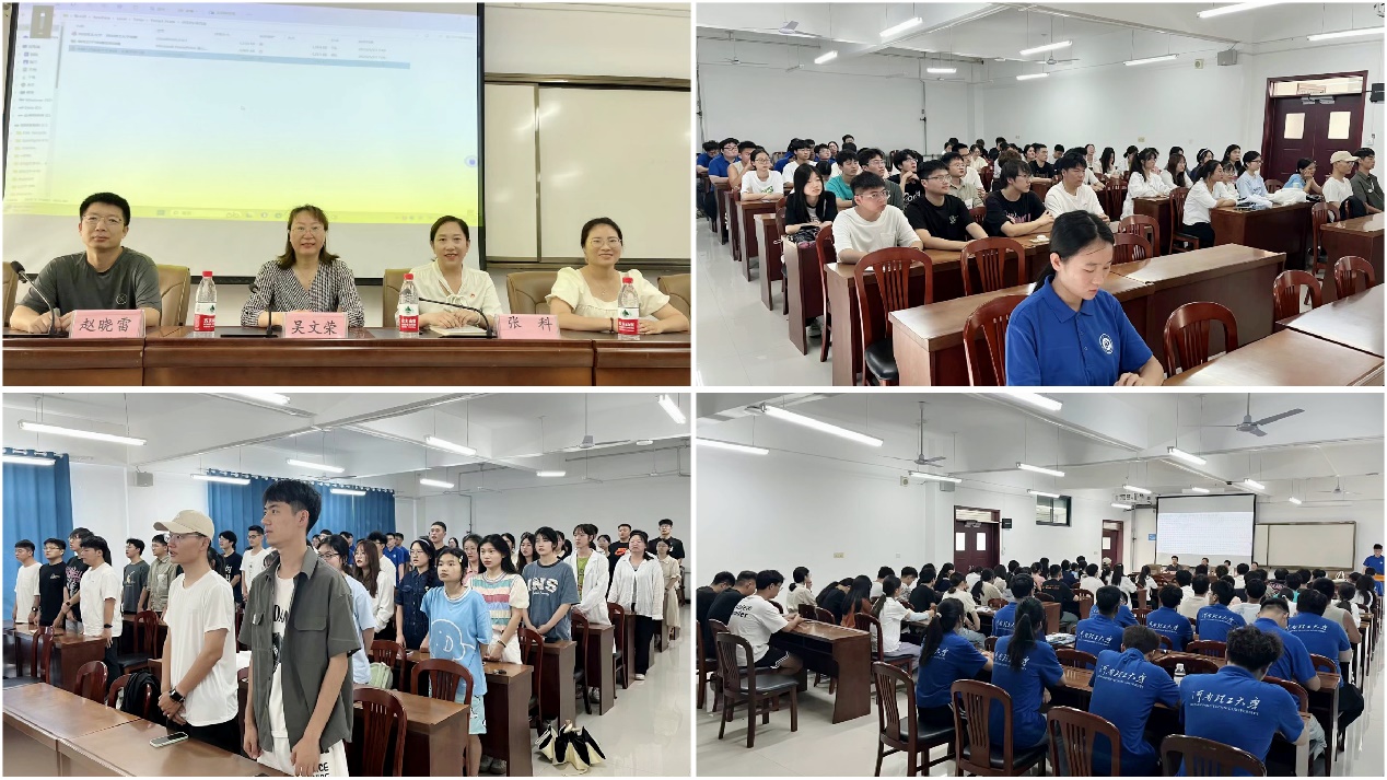 仪式在庄严的国歌中拉开序幕,主持人公布了参与此次社会实践的团队名称和选题立意。随后,四位指导老师分别对参加“三下乡”社会实践活动的同学们提出希望和要求,一是希望同学们严守纪律,慎于安全,始终把安全工作放在首位,确保社会实践活动有序进行;二是要正确认识社会实践的重要意义,聚焦性地完成社会实践内容;三是要树立团队意识,共享资源、互帮互助,更好地开展社会实践活动;四是要提高个人素质,以良好的精神面貌、文明的行为举止,展现我院学子的优良精神风貌;五是要注重活动后的总结收获,加强宣传,及时报送,各实践团队要收集整理好各项活动资料,及时做好视频、图片、文字等资料的整理和平台报送工作,接着优秀实践活动代表陈雨情进行了经验分享,她从素材要求、投稿内容、活动形式等方面为同学们详细介绍了“三下乡”社会实践活动的要求和许多在活动期间可能遇到的问题。最后,全体实践团成员庄严宣誓,表示将始终牢记习近平总书记的殷切嘱托,砥砺奋进,不懈奋斗,用实际行动,高水平、高质量地完成社会实践的各项活动。
