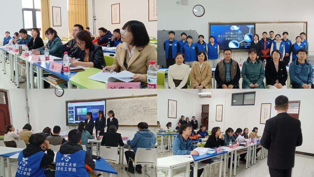 为贯彻落实党的二十大精神,引导广大青年提升创新意识,提高创业能力和实践能力,我院于11月5日下午在综合实验楼101教室举办了第十八届“挑战杯”大学生创新创业计划竞赛。本次竞赛特邀我院团委书记张科、矿物加工工程系主任史长亮、化学实验中心主任毕文彦、化学实验中心吴文荣、应用化学系硕士生导师赵晓雷、财经学院会计学系蒋晓改、应用化学系硕士生导师刘宪云7位老师作为评委。