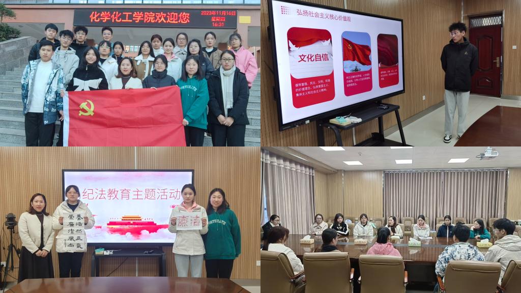 为教育引导我院应化专业本科生党支部成员不断提高政治判断力、政治领悟力、政治执行力,严防“七个有之”问题,自觉用习近平新时代中国特色社会主义思想统一思想,统一意志,统一行动,11月16日下午,我院应化专业本科生党支部成员在综合实验楼411举办明方向、立规矩、正风气、强免疫专题纪律教育中“书记讲纪法”专题活动,活动由党支部书记张科主持。