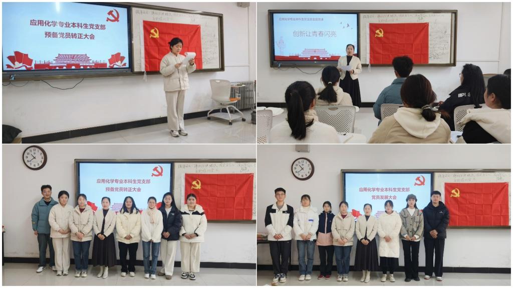 会议伊始,6位发展对象依次在党旗前宣读了入党志愿书,表达了自己对党的忠诚与热爱。他们用庄重而严肃的语言,展现了加入共产党的决心与信念。接着,6位预备党员依次在党旗前宣读了转正申请书,表达自己深知正式党员的责任和义务,并表示将在成为正式党员后,全心全意为人民服务,深切履行党的职责。最后,党支部书记张科给全体党员上了主题为“创新让青春闪亮”的党课。党课分为三个方面:第一,创新的重要性。创新是一个民族进步的灵魂,是一个国家兴旺发达的不竭动力。当今国际社会是一个飞速发展的时代,创新精神显得尤为重要。第二,创新是学校发展的契机。通过创新,学校可以更好地满足学生的学习需求,提高学生的学习成果和技术成果,还可以推动教师的专业发展,提高教师的教学技能和知识水平,使我校真正做到小城办大学。第三,我院开设未来储能技术学院这一举动对我院培养创新型人才、提升科研实力、推进新能源技术的发展以及获取更多资源支持都具有重要意义。会后,同学们纷纷表示要积极学习党的知识、积极接受时代讯号,认真学习,踏实努力,担当起新时代大学生党员的责任与使命。