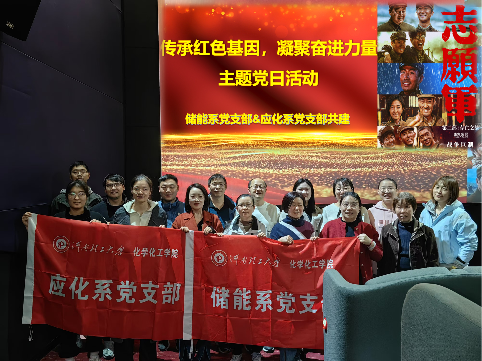 光影映初心,银幕铸党魂。为贯彻落实党的二十届三中全会精神,进一步弘扬爱国主义精神,2024年11月9日下午,我院应化系党支部与储能系党支部联合共建开展“传承红色基因,凝聚奋进力量”主题党日活动,组织党员干部观看红色电影《志愿军:存亡之战》,重温抗美援朝战争中中国人民志愿军的英勇事迹,加强党员的党性修养与爱国情怀。