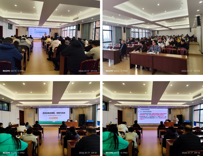 为深入贯彻落实立德树人根本任务,进一步巩固人才培养中心地位,切实强化本科教学基础,我院于2026年1月17日,邀请学校教务处处长程钢,就2025年本科教学工作及教学成果奖申报作专题讲座。学院领导及全院教师参会,讲座由仪桂云副院长主持。