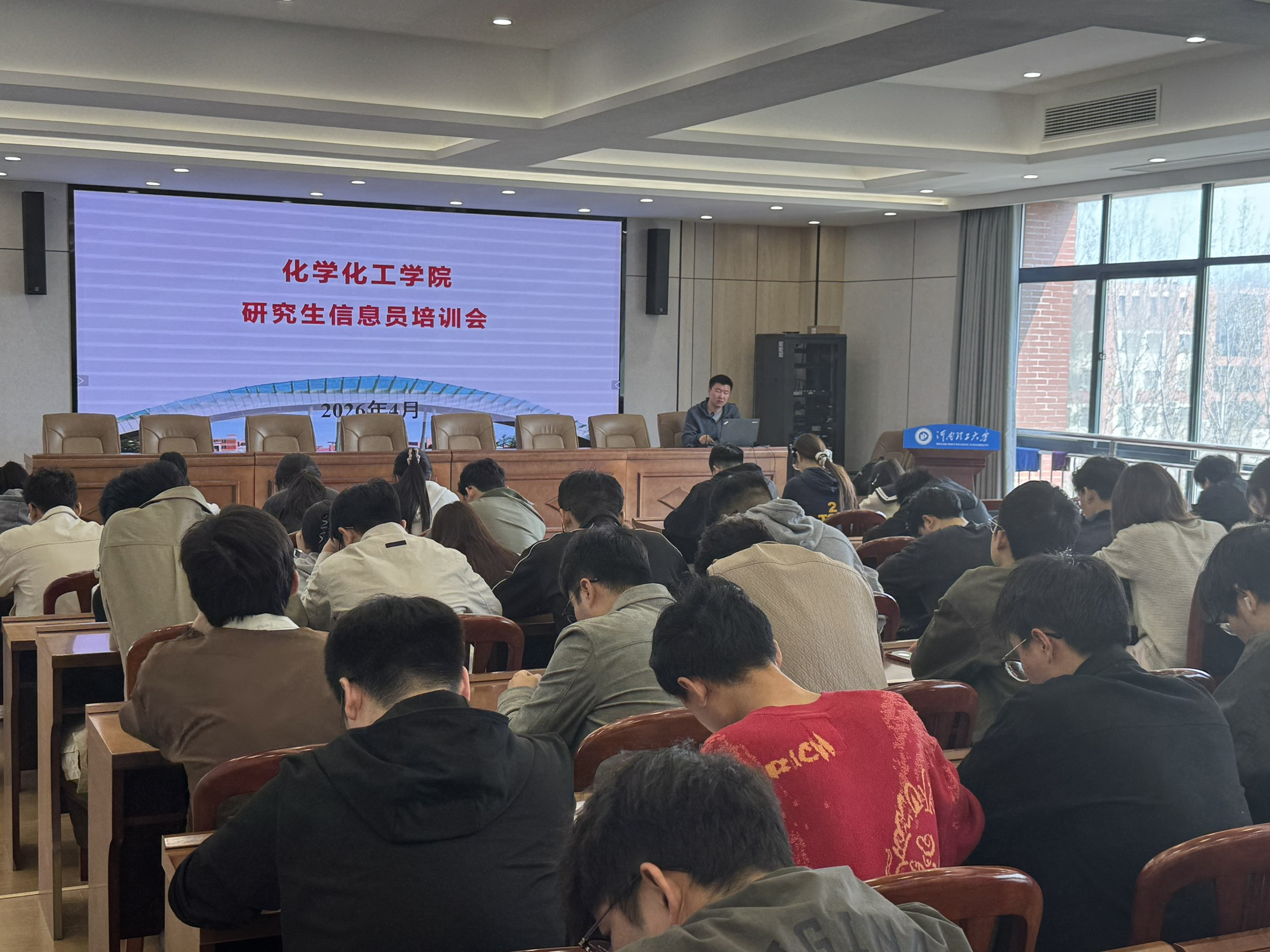 2026年4月3日,化工学院在综合实验楼507会议室召开研究生信息员专题培训会。学院全体研究生信息员参会,培训由研究生辅导员闫奋飞主讲。