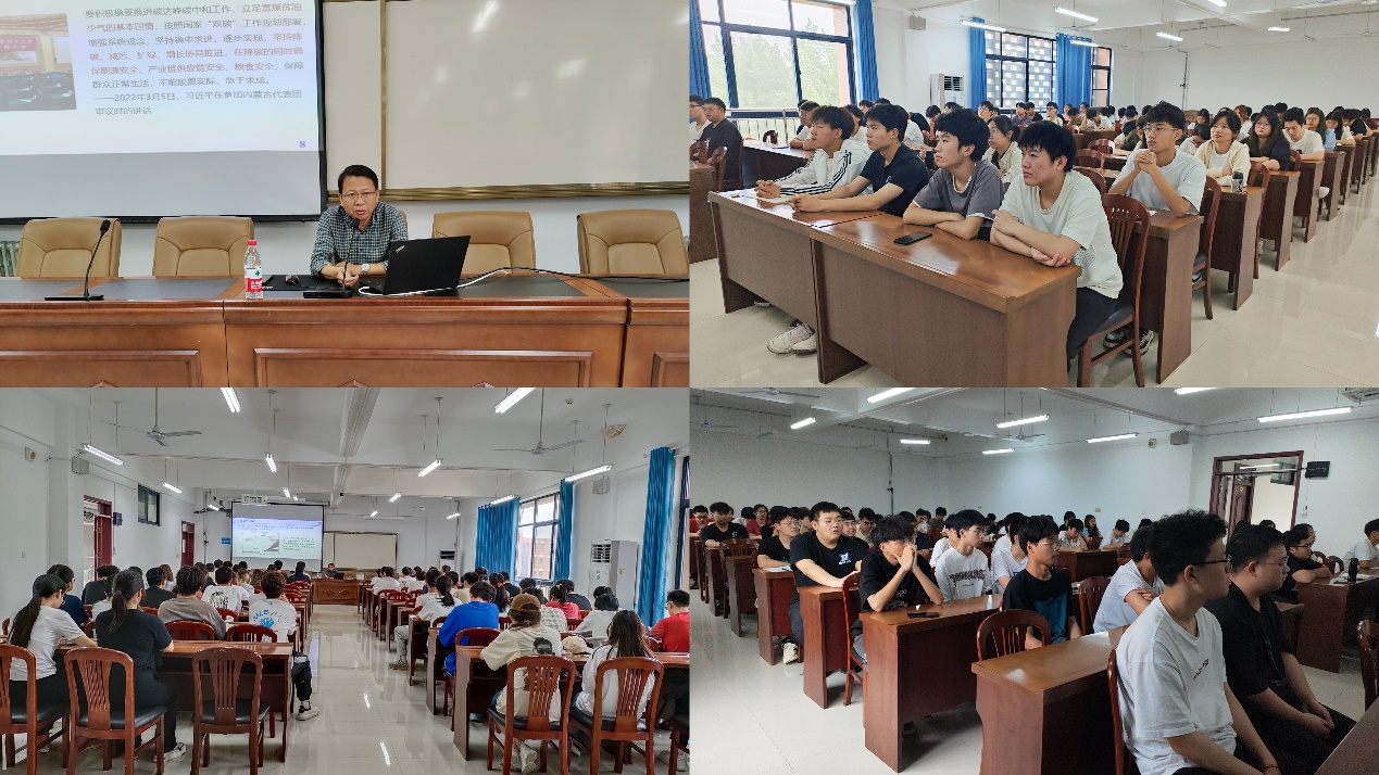 为深入学习贯彻习近平新时代中国特色社会主义思想,深刻领悟“碳达峰碳中和”的重大意义,提升学生的综合素养,6月5日下午,院长刘宝忠教授以“深刻认识和把握碳达峰碳中和”为主题,为学生带来一堂生动的思政课。