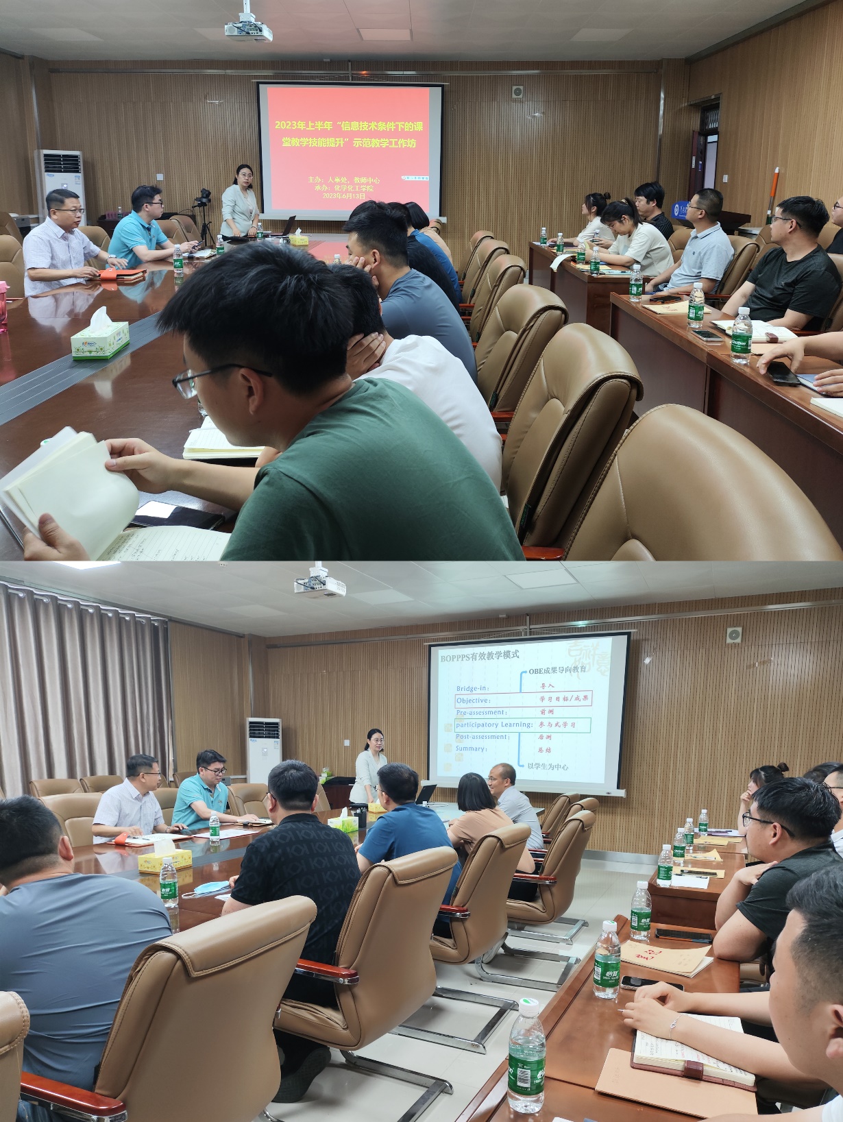 为更好地发挥高校示范教师的示范、辐射、引领作用,以点带面促进广大教师的教学能力提升,在教学理念、方法与技巧等方面形成良性互动,实现优质教育资源共享,进一步提高教育教学和人才培养质量,6月13日下午,由人事处、教师中心主办,化工学院承办的2023年上半年“信息技术条件下的课堂教学技能提升”示范教学工作坊在我院综合实验楼411会议室成功举行。我院邀请校示范教师陈玉梅老师进行教学理念和方法等分享,讲座由我院院长刘宝忠主持,人事处副处长、教师中心副主任范如永、教学副院长邢宝林、党政办及教科办部分人员参加,学院近三年新进教师及中青年教师现场观摩学习。