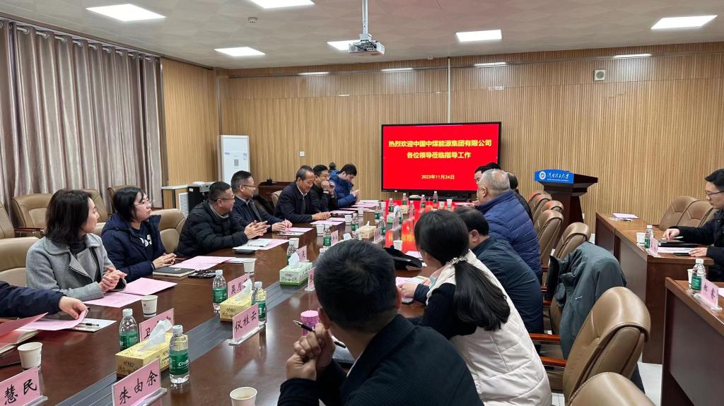 为增进交流,助推学院科研成果转化,提升学科影响力,根据双方商定,11月24日,中煤华利能源控股有限公司党委副书记、总经理惠功领,中国中煤能源集团有限公司科技创新部副总经理王新海、中国煤炭工业发展研究中心三处处长叶旭东、中煤(天津)地下工程智能研究院有限公司副总工程师卫中宽、北京化工大学副教授陆学君、哈密市和翔工贸有限责任公司副总经理尹慧民等一行12人莅院参观交流,院领导王少华、范云场、仪桂云及师生代表参加座谈交流,座谈会由副院长范云场主持。