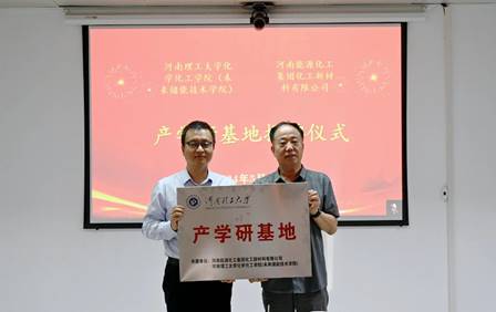 为加强校企合作,实现资源共享、协同创新、提升学生培养质量,5月13日,我院副院长范云场、仪桂云等一行参观、访问河南能源化工集团化工新材料有限公司。双方就产学研合作、人才培养、学生实习实践等事宜进行深入交流,并举行“产学研”基地揭牌仪式。