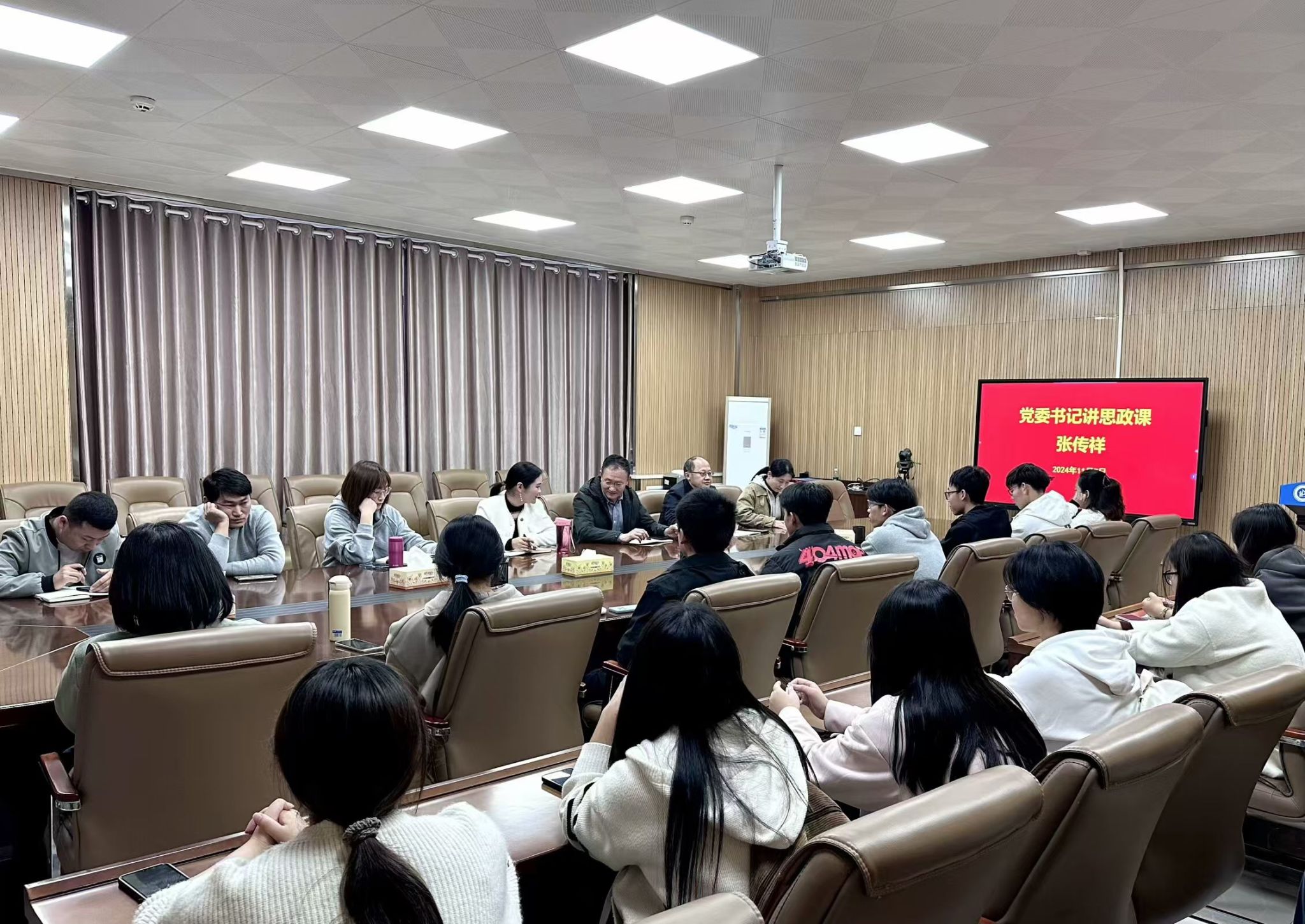 为着力落实立德树人根本任务,培养学生家国情怀,增强社会责任感,提升专业发展信心,11月7日下午,我院党委书记张传祥在综合实验楼411会议室为师生代表讲授思政课。