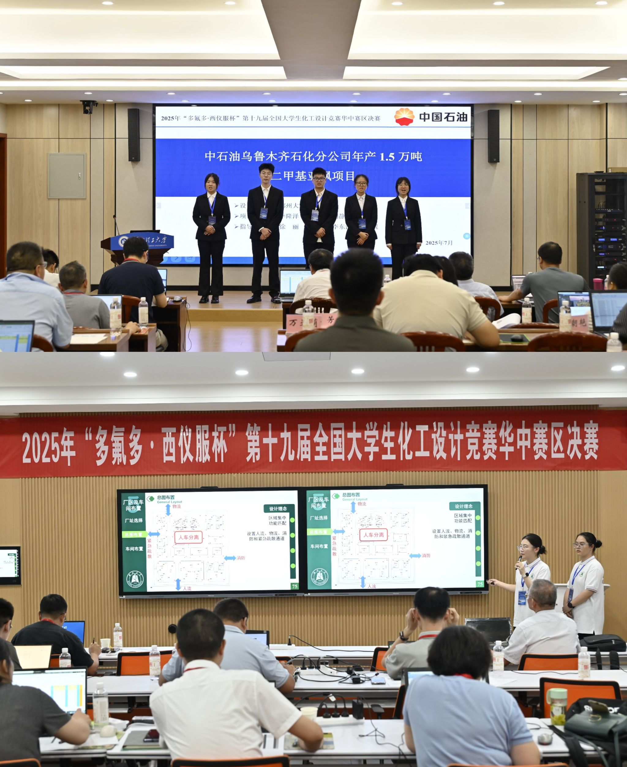 7月29-30日,2025年“多氟多•西仪服杯”华中大学生化工设计竞赛暨第十九届全国大学生化工设计竞赛华中赛区决赛在河南理工大学顺利举行,总决赛包含两轮答辩,第一轮答辩在三号教学楼进行,第二轮答辩在化工学院(综合实验楼)507会议室进行。