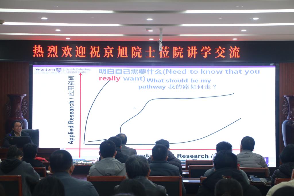报告会上,祝京旭教授首先提出“什么是科研?为什么要做科研?”等问题,并通过列举许多生活中与科学研究有关的事例进行解答。接着,他通过分享参与科研项目的经历,进一步加深同学们对化学工程领域的认识,并指出面对科研应不偷懒,不忘初衷,牢记科学研究的真正目的,立足于本专业,主动承担起社会责任,顺应潮流,引领科技进步,用自己所学造福社会,推动社会的发展。随后,祝京旭结合自身经历及专业知识,与在座师生探讨了科研的意义。他指出:在时代的洪流中,个人发展需要“与时俱进”,人类的每一步发展都伴随着科技的进步,而科技的进步又反过来促进社会的发展。基础科研为社会积累知识,应用科研为社会创造价值;基础研究为应用研究奠定基础,应用研究给基础研究指引方向;两者是相辅相成的。最后,祝京旭指出,科研工作者要有事业心、责任心,需要契约精神,更要勇担国家富强、民族复兴的重任。在交流过程中,祝京旭通过自身体验,从多个角度诠释科学研究的初衷,分析科学研究的方法,并通过典型“案例”,展示了成功开展科学研究的“秘诀”,讲述了培养科学研究能力的“真谛”,深入浅出,旁征博引。与会师生认真记录,积极交流,现场学术氛围热烈。