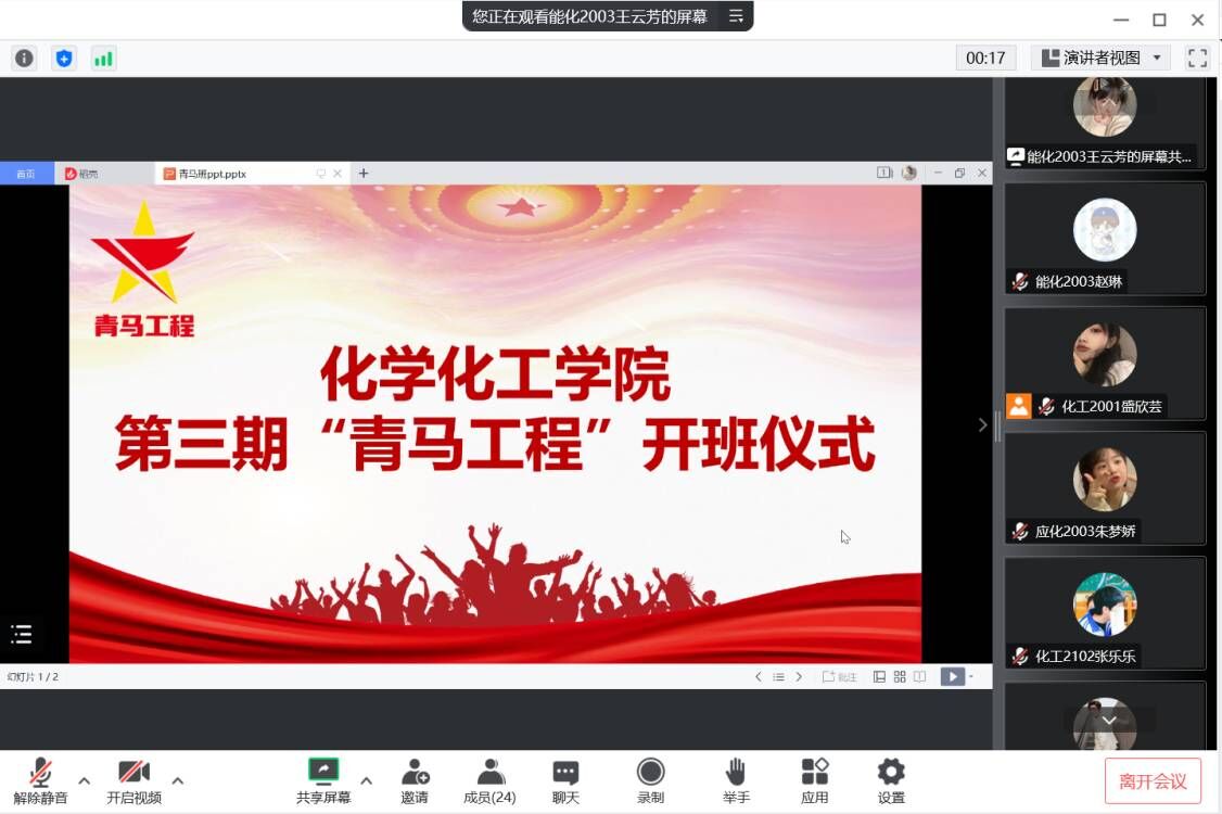为深入学习贯彻习近平新时代中国特色社会主义思想,引导我院青年学生积极学习党史,厚植知史爱党、知史爱国的理想信念,深入推进青年马克思主义骨干培养工程,10月25日下午,我院团委以线上形式举行第三期“青马工程培养班”开班仪式,院团委书记张科和青马班全体成员参与仪式。