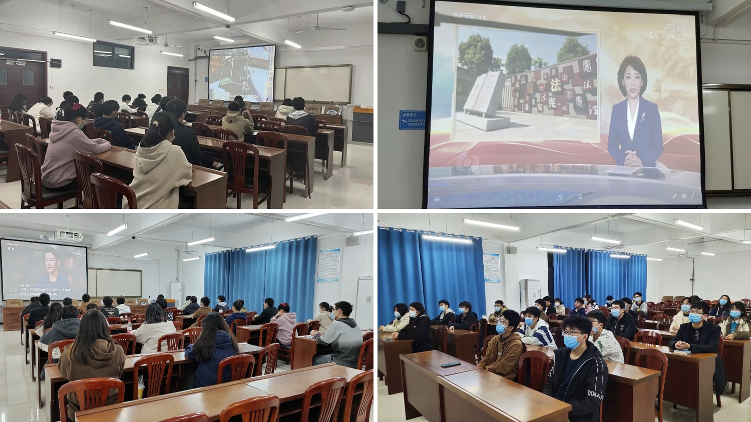 本次活动主要以观看法治宣传讲座的方式进行开展,向同学们普及各种法律法规的相关知识,通过对法律法规的相关介绍,使同学们意识到法律对于人身安全和个人利益的重要性。讲座中还强调了要坚定“四个自信”,全面推进依法治国,发挥法治固根本、稳预期、利长远的保障作用,完善以宪法为核心的中国特色社会主义法律体系,扎实推进依法行政,严格公正司法,加快建设法治社会,教育、引导学生知法守法,提高学生的法治意识和规则意识。同时讲座围绕法治教育的重要性展开话题,宣传违法行为对自身、社会甚至国家带来的巨大危害,大力倡导、呼吁学生遵纪守法,远离违法犯罪,从自身做起,切实推进依法治国。讲座的最后还呼吁大家积极主动尊法、守法、用法,提升法制素养,从而实现人人懂法、人人知法,将法治宣传教育落实到位。活动结束后,同学们纷纷表示在今后的学习中会主动学习掌握系统的法律理论,树立良好的法律观念和提高法律素质,学会拿起法律武器保护自己,推进法治教育的宣传。