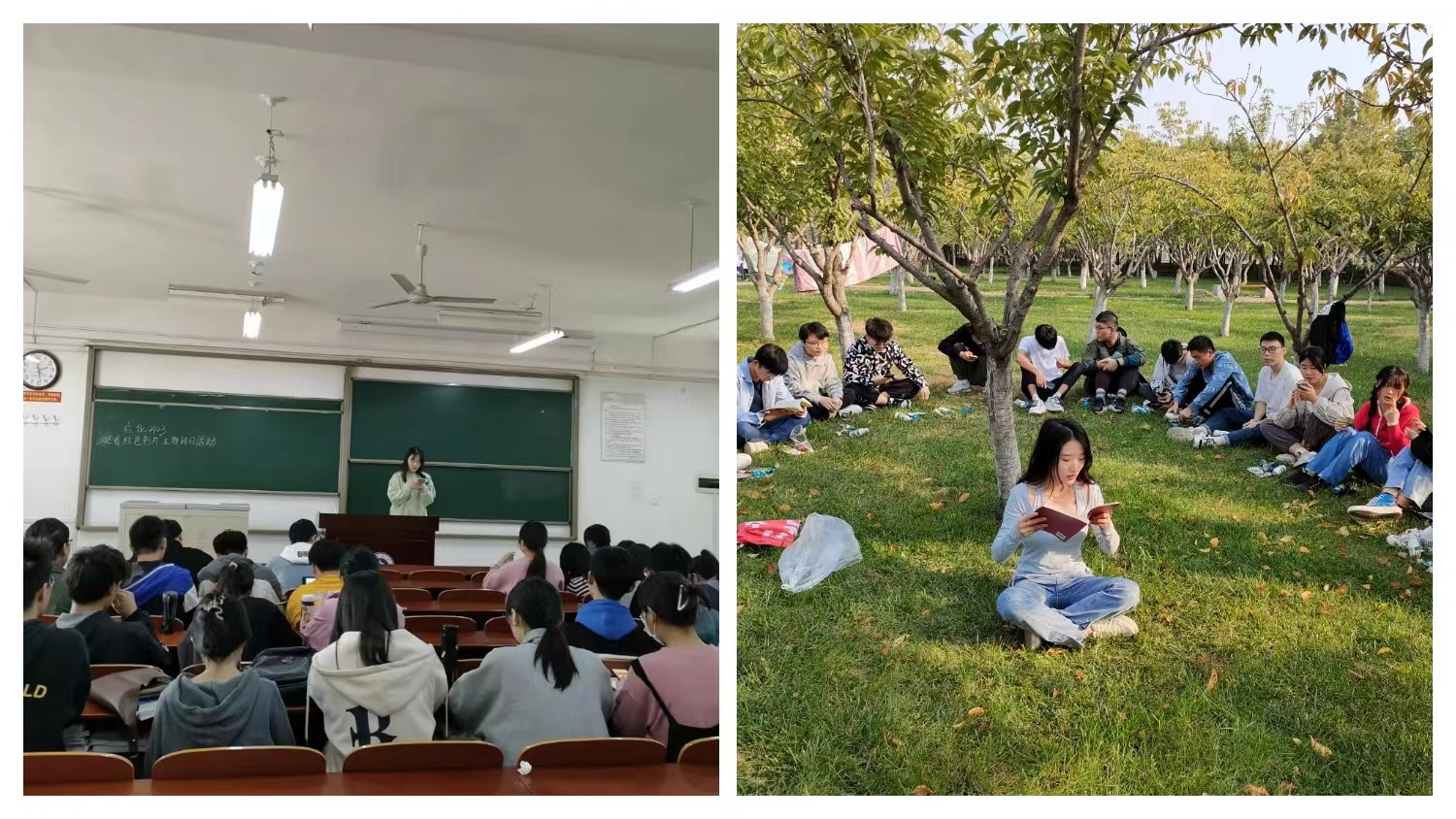 本次活动主要由“观影知党史”看红色电影、“诵读红色经典”读书分享会以及“党‘音’我知道”红歌竞猜三大部分组成。10月18日,进行了第一项活动,应化21级采用线上形式观看了影片《万里归途》,在一帧帧场景的切换中,同学们感受到了纵使“归途”漫漫,但只要有勇气、有信念,万里长路我们亦能回家。根据疫情防控要求,10月19日至10月26日应化21级同学以班级为单位分批次于“听雨林”开展了读书分享会和红歌竞猜两项活动。在分享会中,同学们席地而坐,在草坪上尽情歌颂党的伟大,一部分同学积极分享自己了解的红色人物故事、朗读红色经典,其他人则认真聆听,发表自己的感悟。在之后的红歌竞猜环节中,团支书随机播放红色歌曲,同学们在听完歌曲后踊跃猜歌。在不断的猜歌声中,留下了阵阵欢声笑语,与此同时,同学们也在猜歌中唱响了当代青年爱国爱党的主旋律,激发出自己爱党爱国的热情。