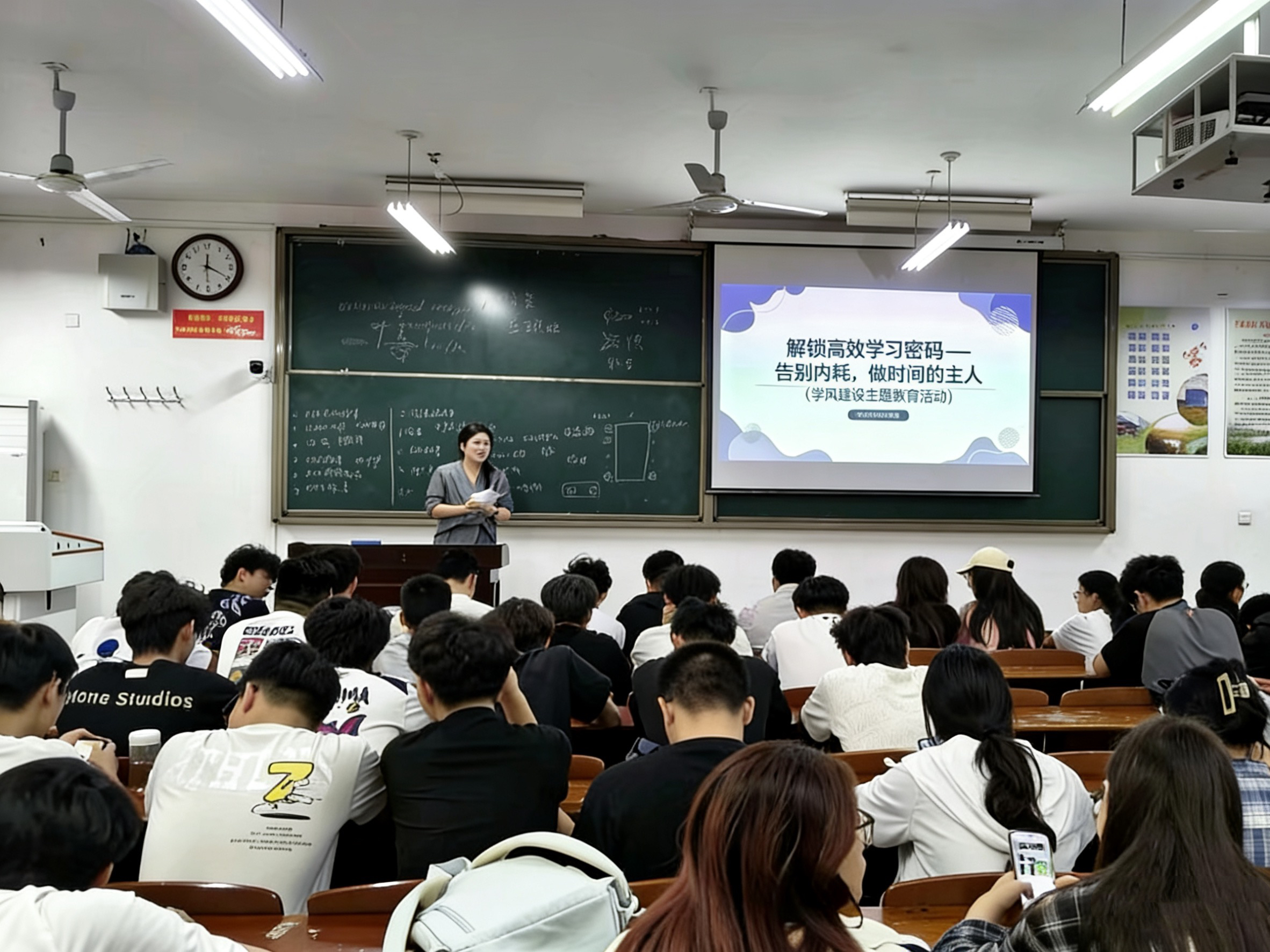 2025年9月25日,化学化工学院以“解锁高效学习密码——告别内耗,做时间的主人”为主题的学风建设教育活动顺利开展。本次活动由勾月老师统筹策划,各班级学习委员、学生骨干代表共计50余人参与,旨在帮助同学们掌握科学学习方法,破除学习内耗,营造积极向上的班级学习氛围。
